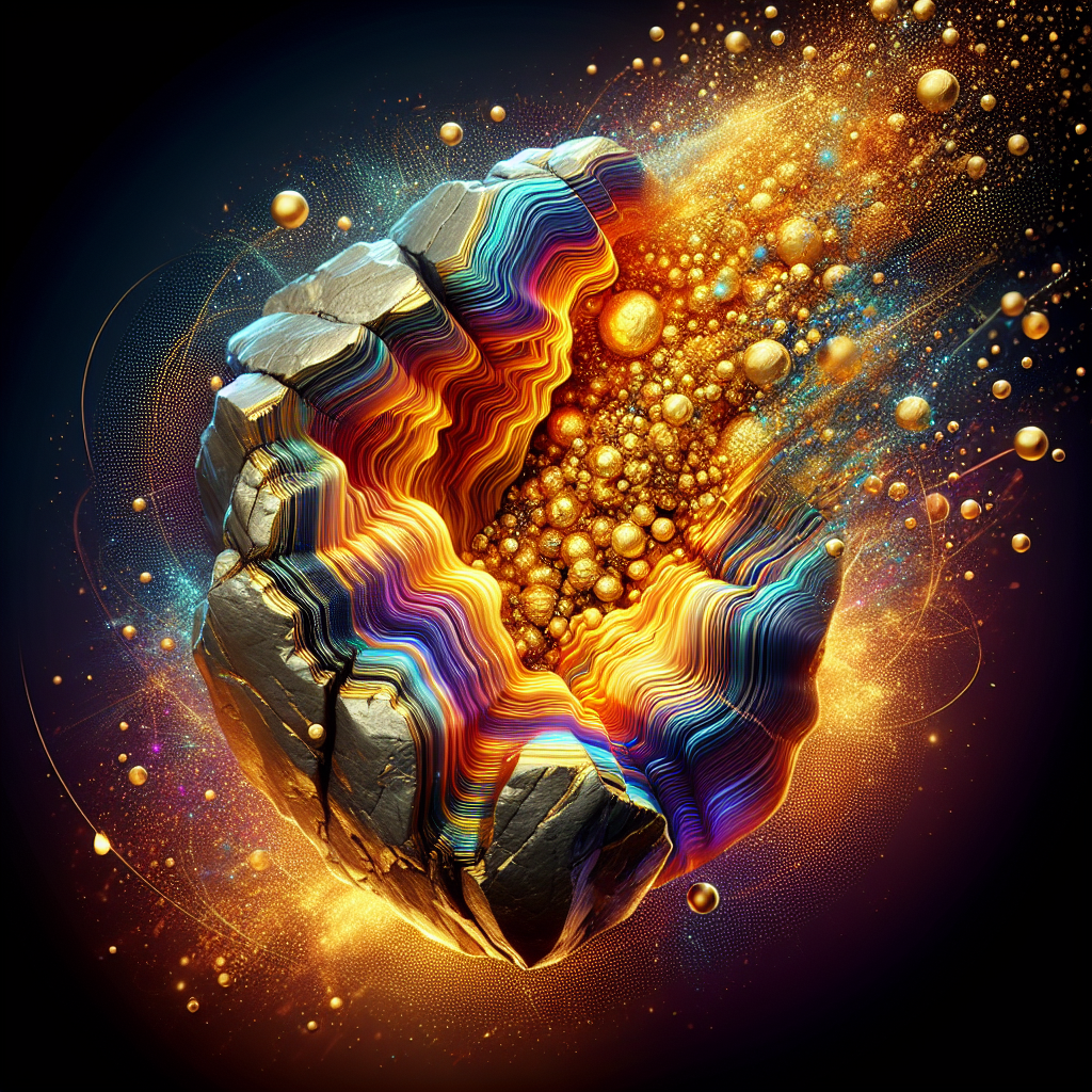 prompt: A rock cut in half with gold inside