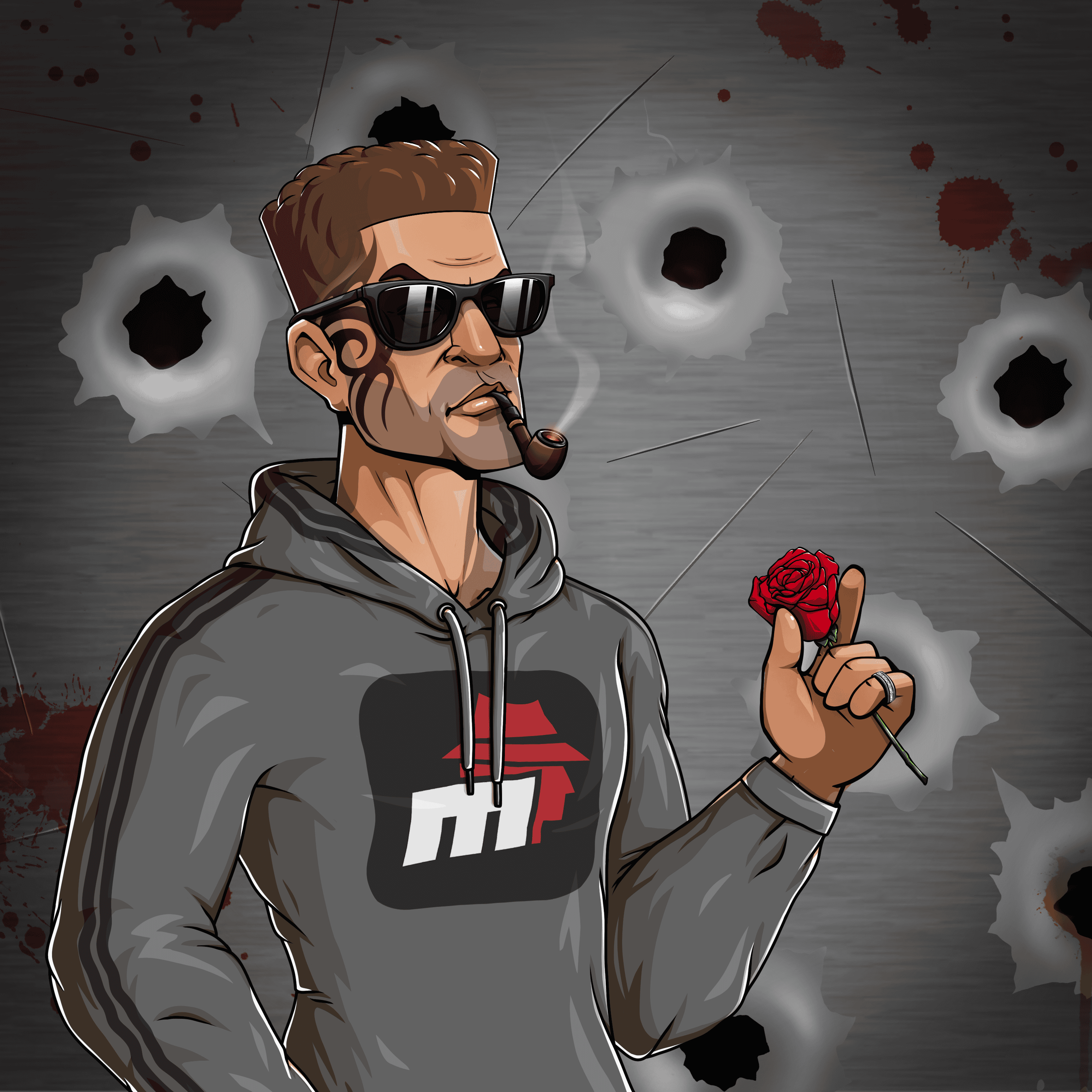 Clothes: Grey Branded Hoodie