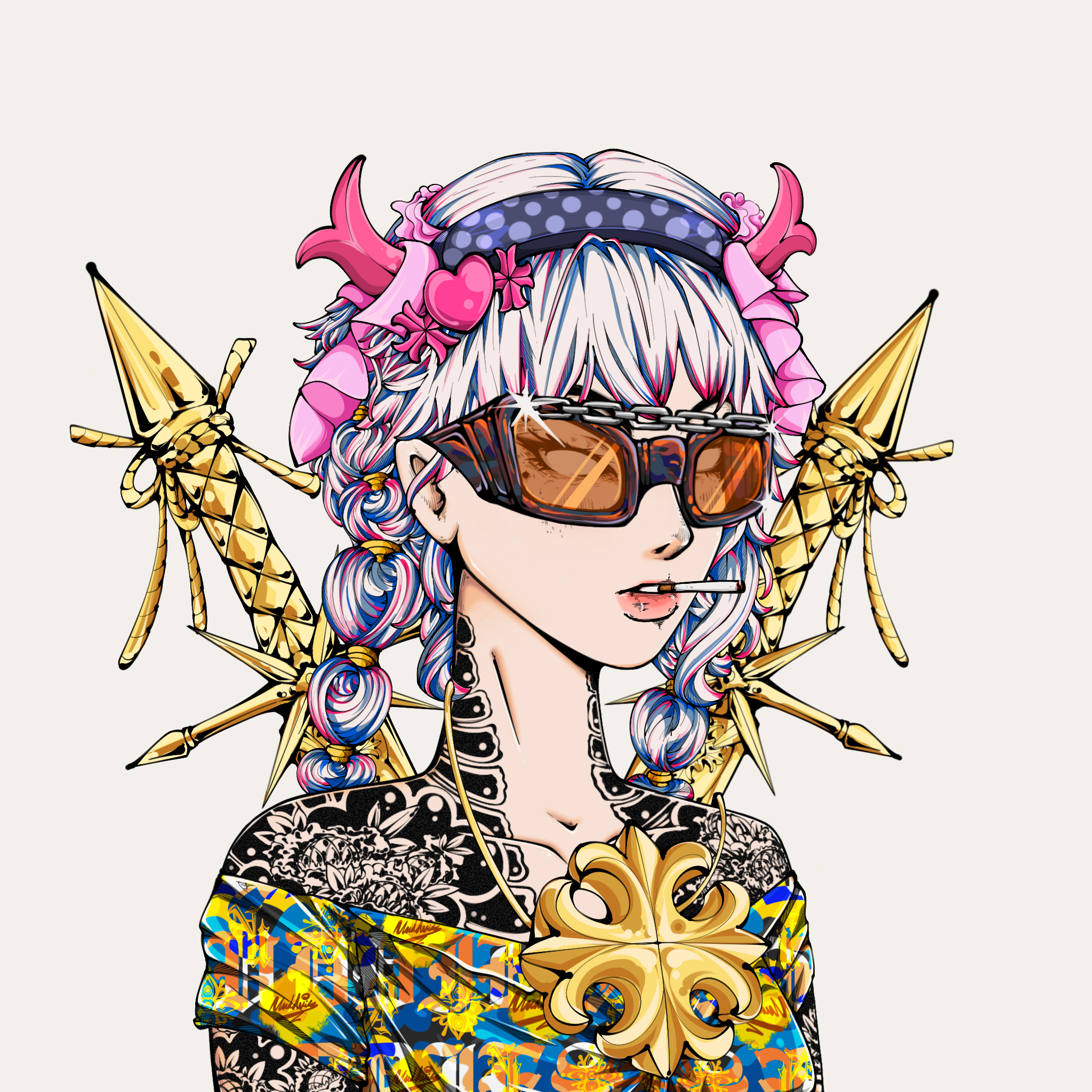 Head: Pink Horned Polkadot